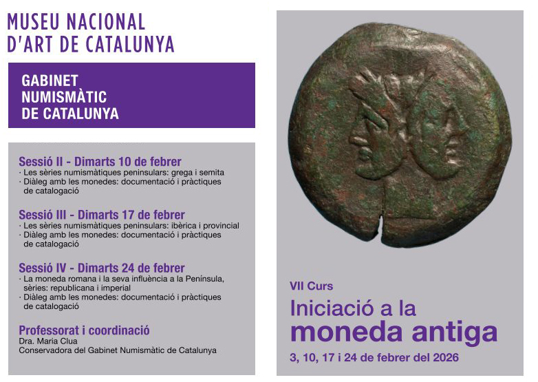 El pròxim 3 de febrer tindrà lloc el VII Curs d’iniciació a la moneda antiga al Gabinet Numismàtic de Catalunya del Museu Nacional d’Art de Catalunya, .